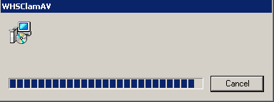 he download of ClamWin will then start (remember WHSClamAV is an Add-In which allows you to use ClamWin within the Windows Home Server Console). Wait for the download to complete: